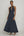 Satin Navy and White A Line V-Neck Maxi Polka Dot Dress with Sleeves