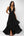 Black and White V-Neck Satin Maxi Mother of the Bride Dress with Slit