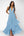 Satin Blue and White Short Sleeves A Line Maxi Polka Dot Dress with Sash