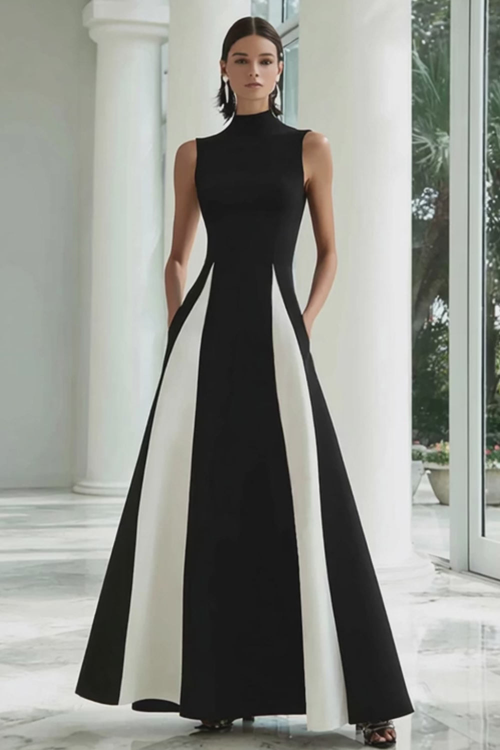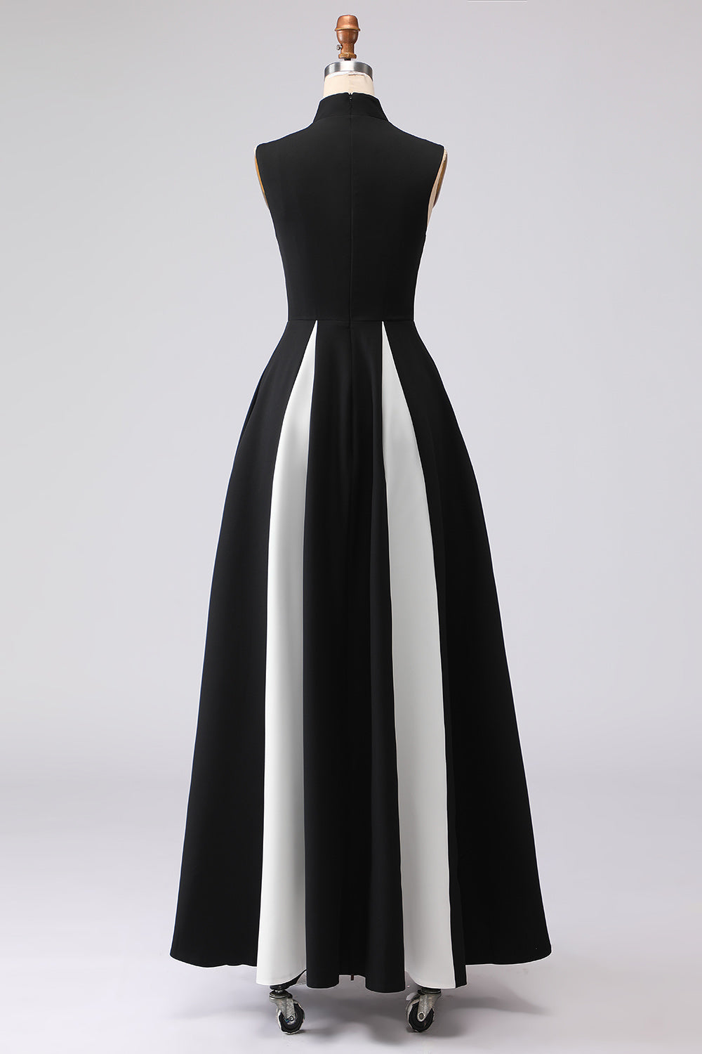 Black and White High Neck Maxi A Line Formal Dress