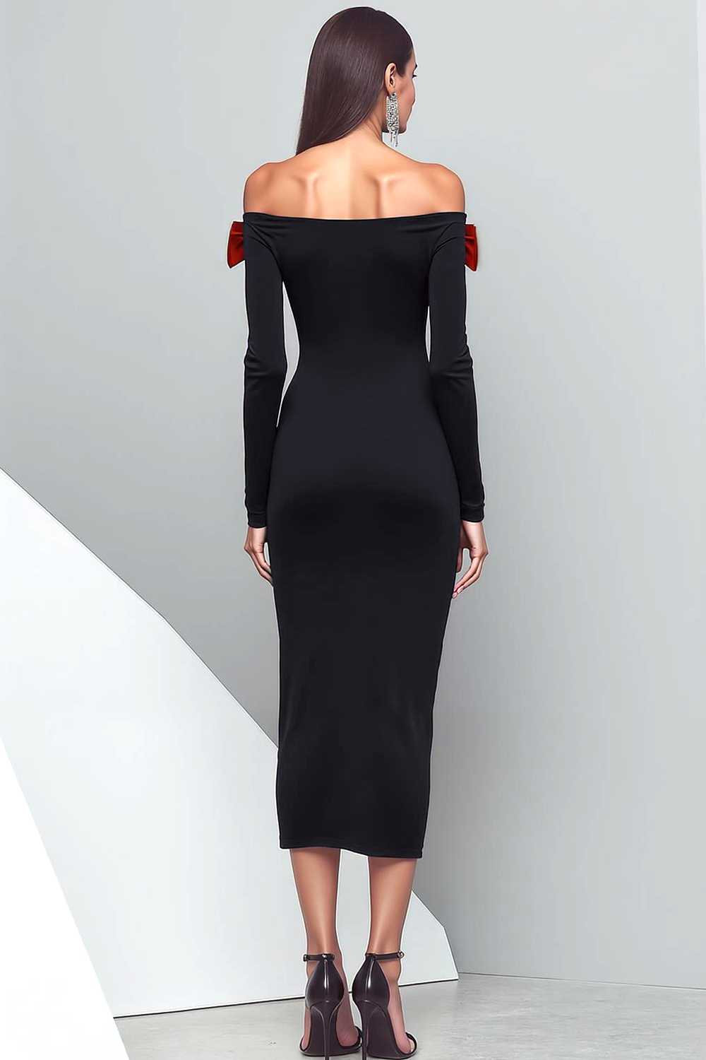 Black Off the Shoulder Sheath Long Evening Dress with Bows