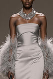 Silver Strapless Mermaid Long Satin Formal Dress with Slit