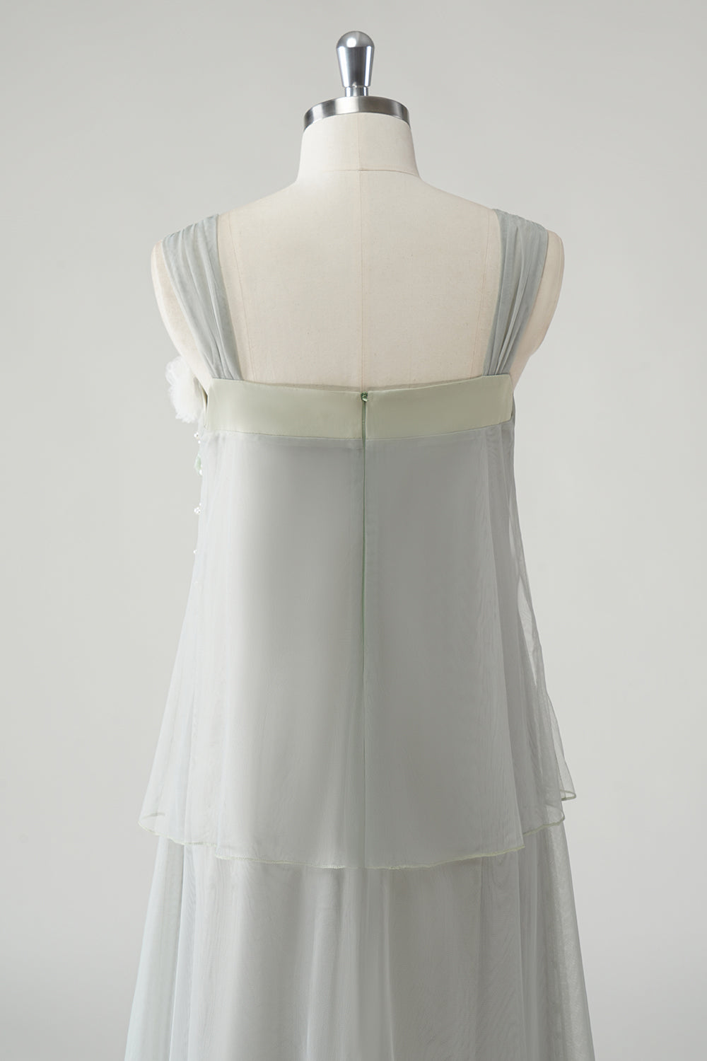 Grey Tiered Chiffon Spaghetti Straps Mother of the Bride Dress with Beading