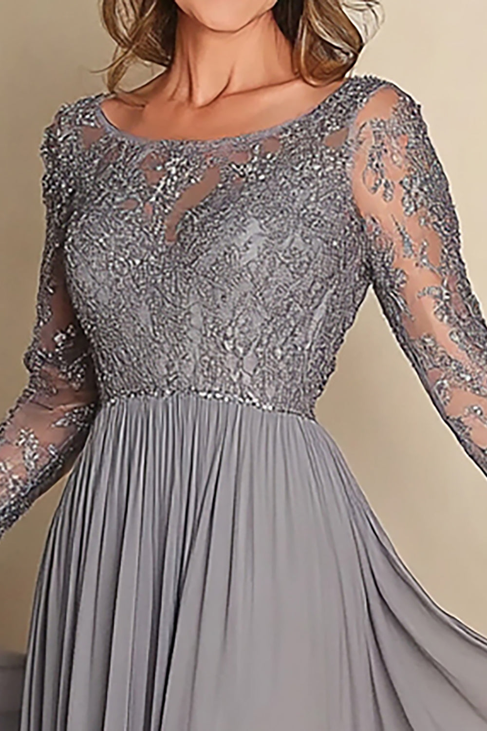 Silver Sparkly Applique Chiffon A Line Mother of the Bride Dress