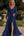 Navy Chiffon A Line Long Sequined Mother of the Bride Dress with Slit