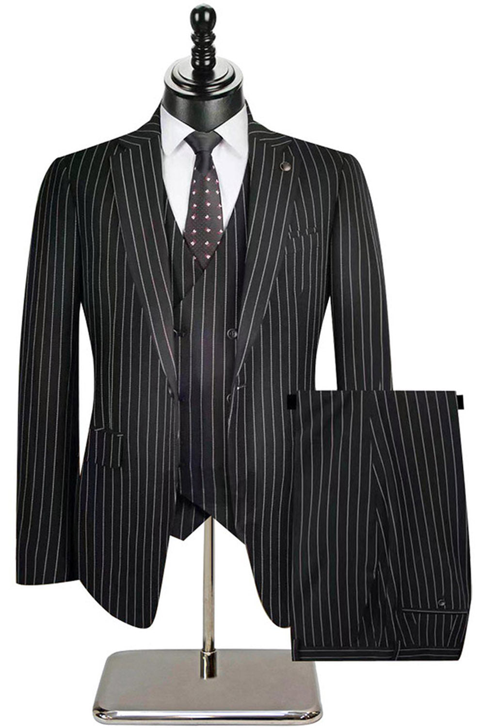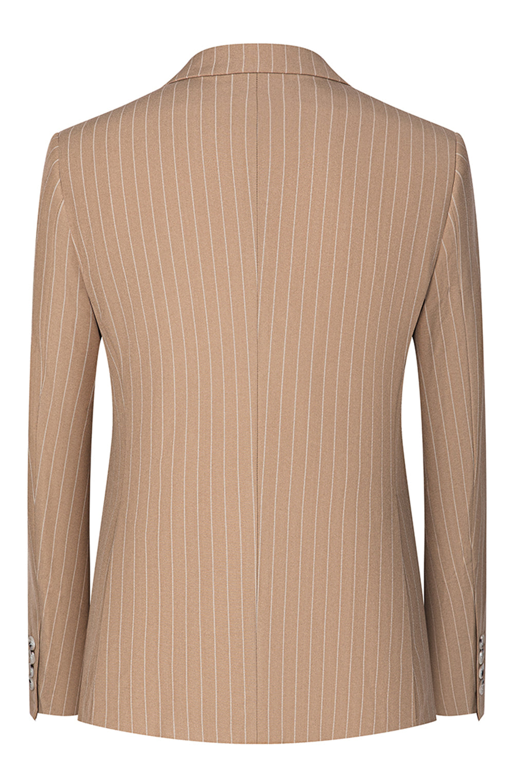 Beige Striped Notched Lapel 3 Piece Men's Suits