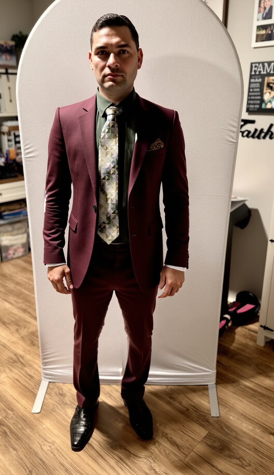 Burgundy 2 Piece Notched Lapel Men's Formal Suits