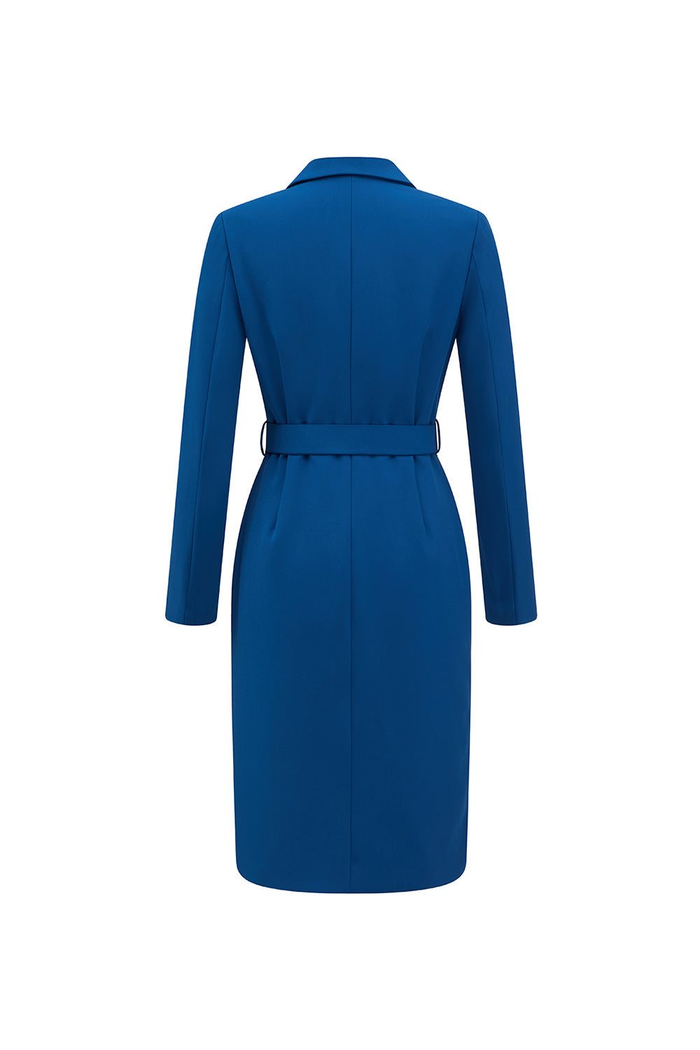 Ink Blue Double Breasted Notched Lapel Midi Blazer Dress with Belt