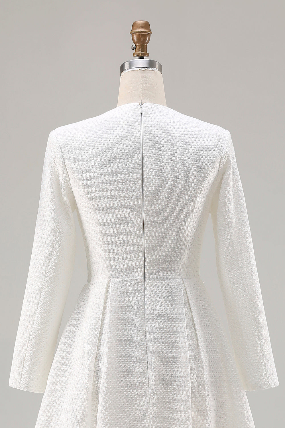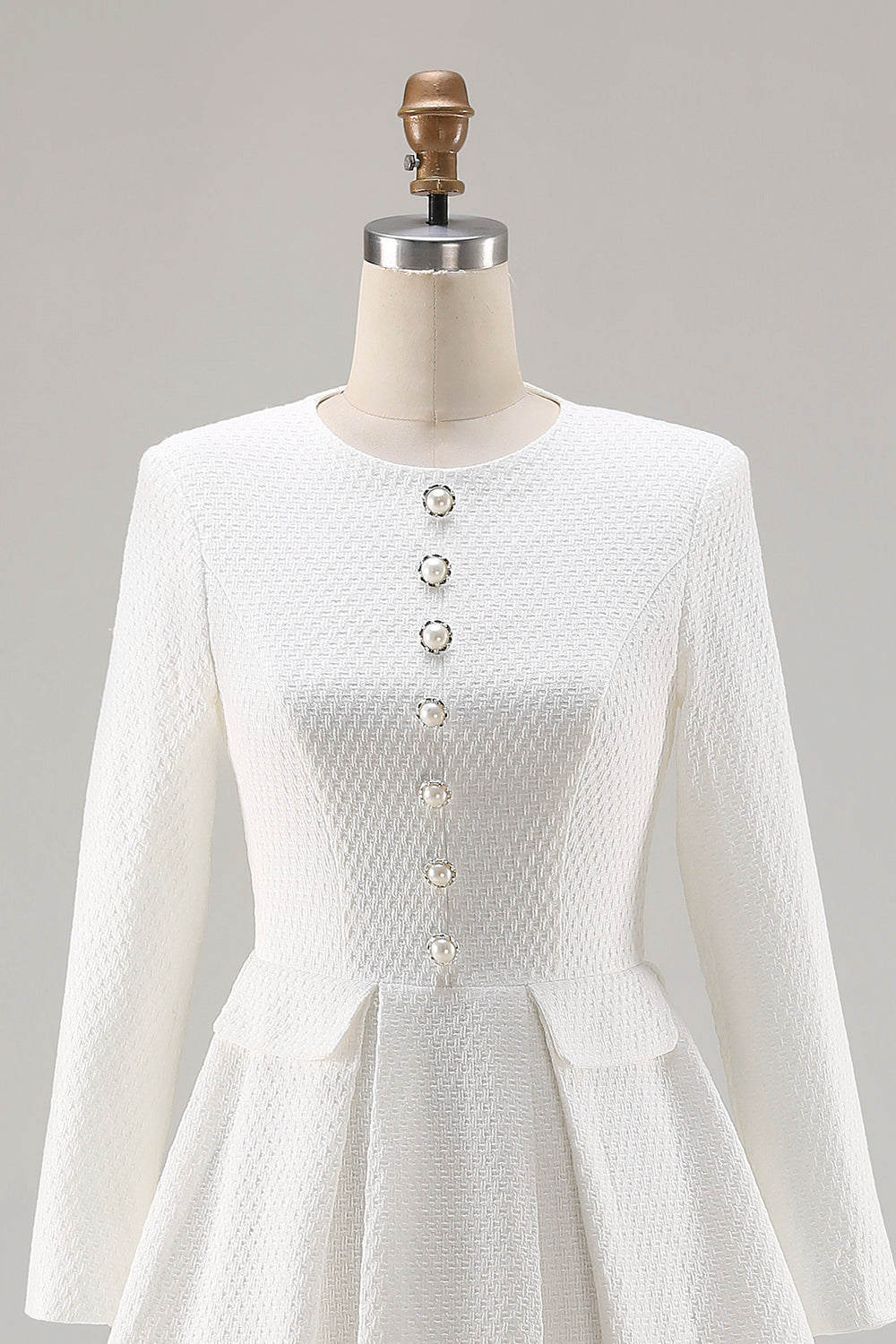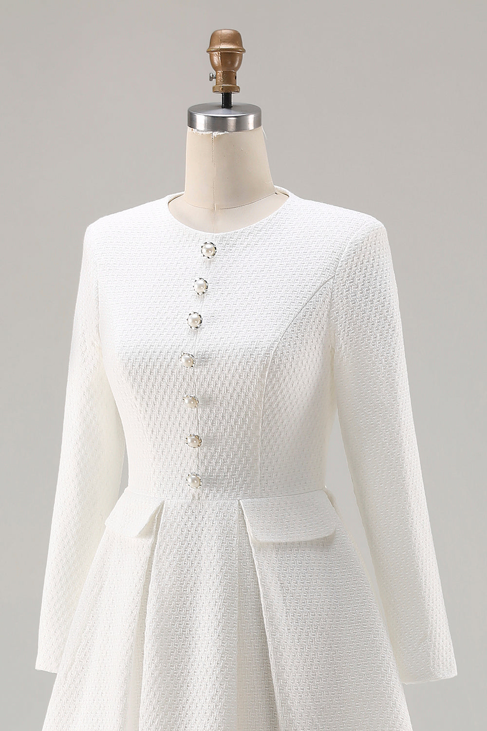 Ivory Long Sleeves A Line Midi Tweed Dress with Buttons