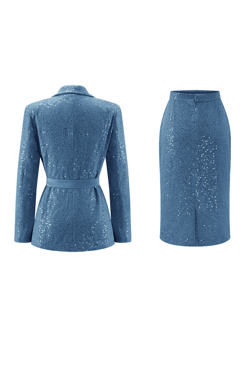 Sparkly Sequin Pink 2 Piece Pencil Midi Prom Suits with Sash