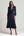 Navy V-Neck Backless Ruched Satin Midi Work Dress with Sleeves