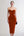 Rust V-Neck Ruched Satin Midi Work Dress with Sleeves