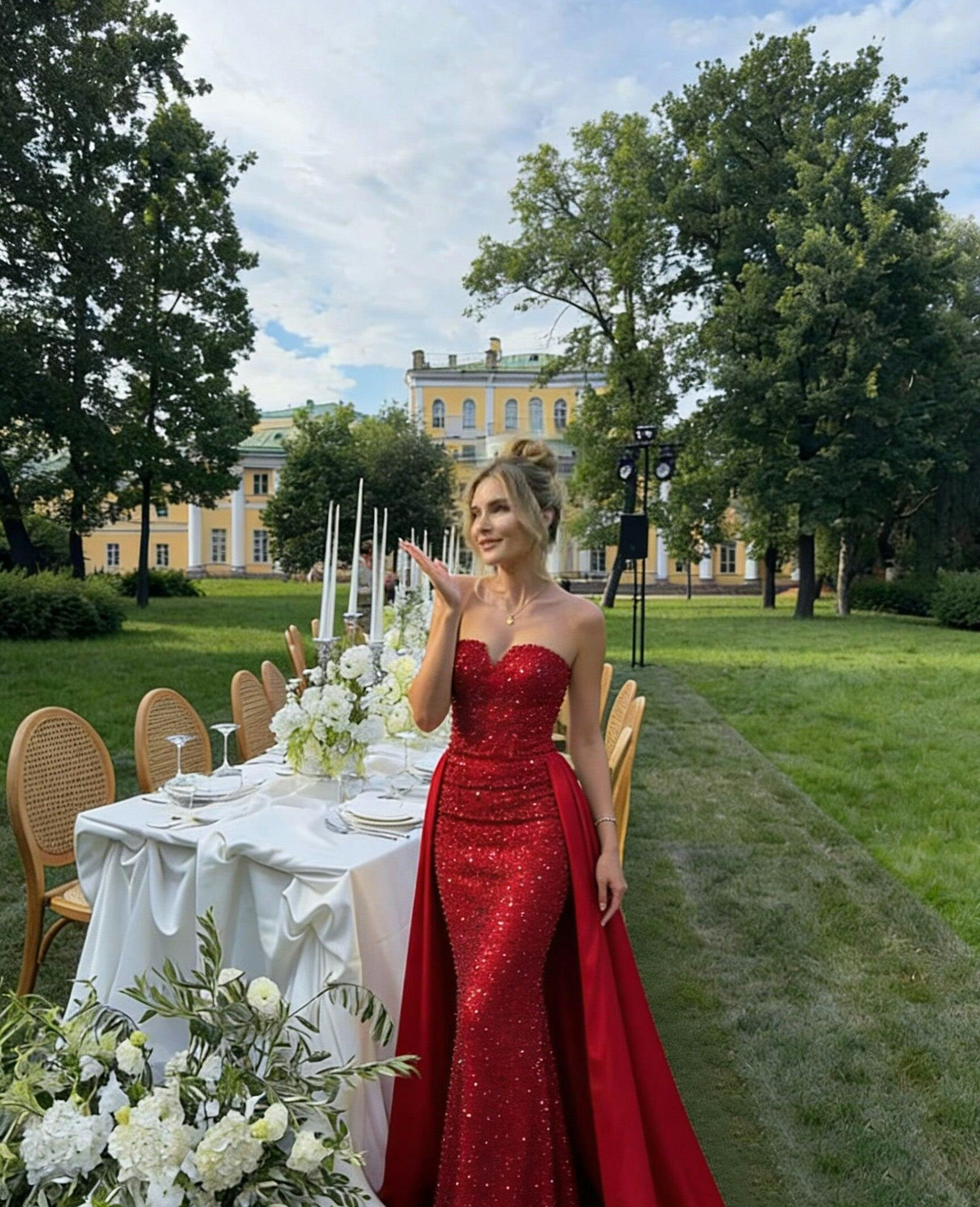 This sparkly dress is a breathtaking gown made to command attention and radiate confidence. Drenched in shimmering sequins, the deep dark red hue creates a bold and luxurious statement, perfect for stage moments and grand entrances. The sweetheart neckline flatters the décolletage, while the fitted bodice highlights the natural curves, flowing seamlessly into a sleek long skirt that embodies elegance. A daring cape detail cascades from the shoulders, adding regal drama and movement with every step.