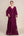 Burgundy Velvet Printed Wedding Guest Dress with Belt