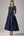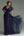 Navy Appliqued Ruffled Round Neck Long Mother of the Bride Dress