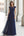 Navy Illusion Neck Maxi Satin Mother of the Bride Dress with Lace