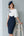 Floral Navy Patchwork Pleated MIdi Mother of the Bride Dress with Appliques