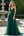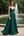 Dark Green V Neck A Line Pleated Maxi Bridesmaid Dress with Slit