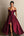 A Line Burgundy Satin V-Neck Ruched Maxi Mother of the Bride Dress
