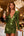This dress is the epitome of sophistication and luxury. The rich dark green hue, combined with the velvety texture, creates a striking, opulent look that catches the light with every movement. The burnout fabric adds a subtle depth and intricate...