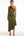 Olive Satin Sheath Spaghetti Straps Long Bridesmaid Dress