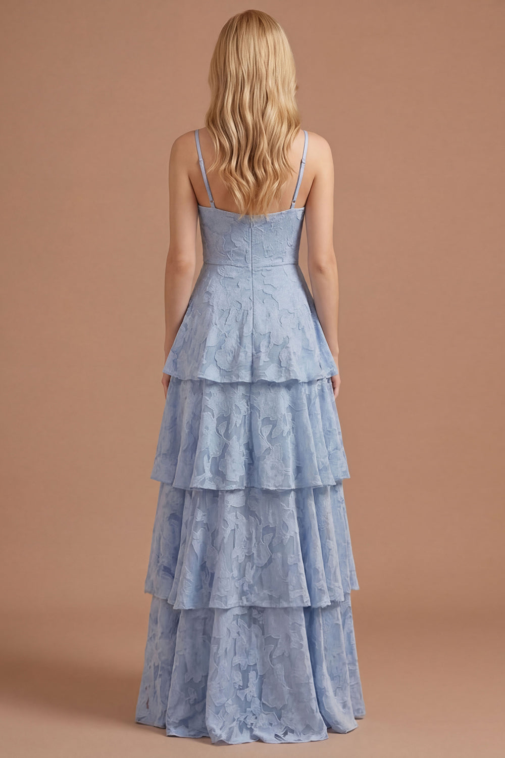 Dusty Blue A Line Floral Spaghetti Straps Tiered Long Prom Dress