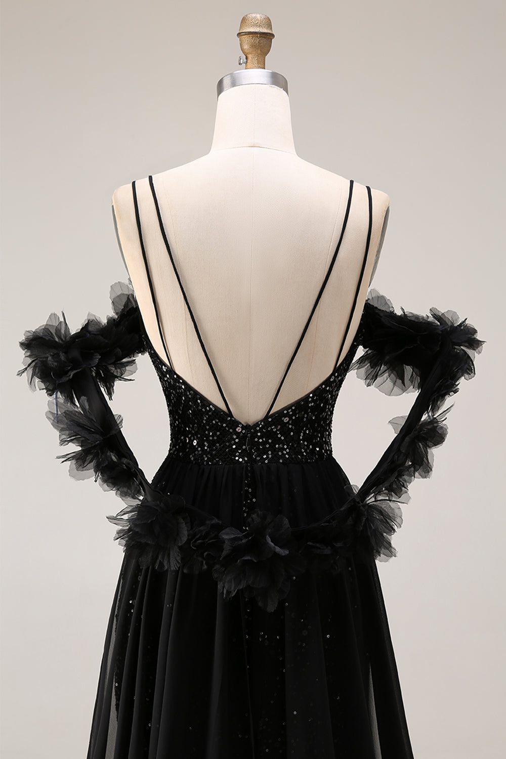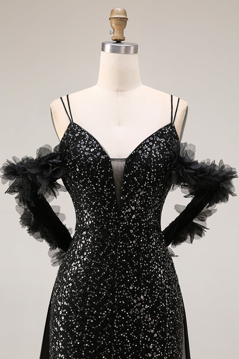 Sparkly Black Cold Shoulder Long Mermaid Prom Dress with Cape