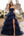 Navy Ruffled Princess Tiered Tulle Long Prom Dress with Slit
