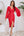 Sparkly Red Lace Long-Sleeve Ruched Cocktail Dress