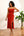 Red Chiffon Mid-Calf Bridesmaid Dress with Slit