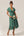 Green Flower A Line V Neck Tea Length Wedding Guest Dress with Short Sleeves