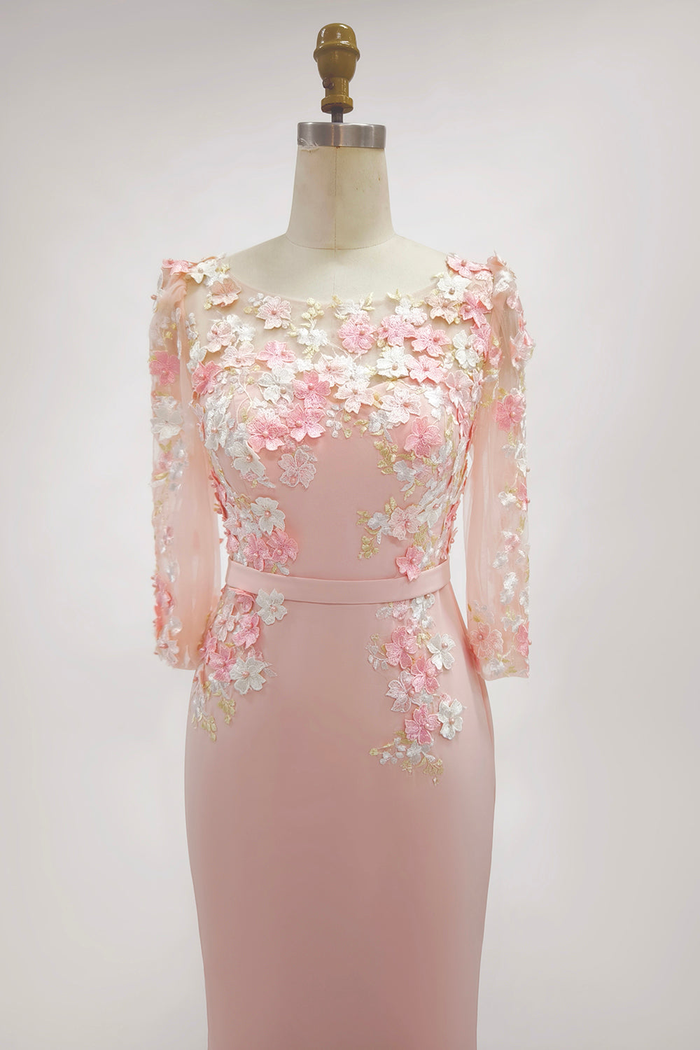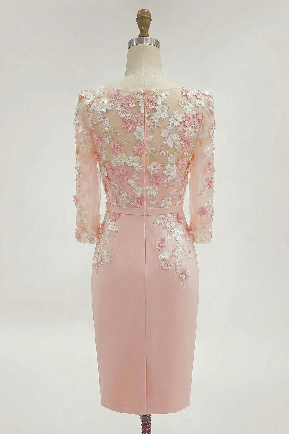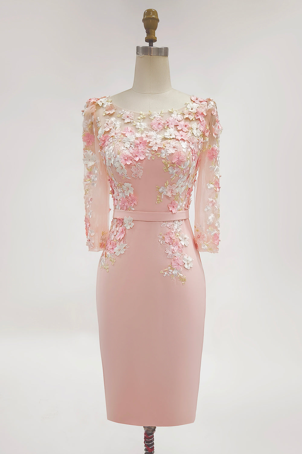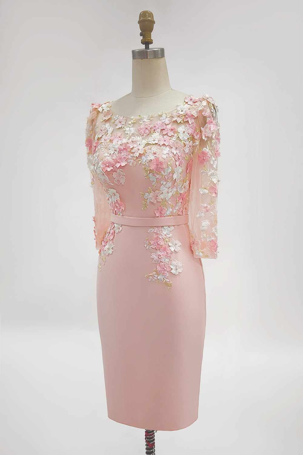 Dusty Rose Midi Bodycon Floral Mother of the Bride Dress with Sleeves
