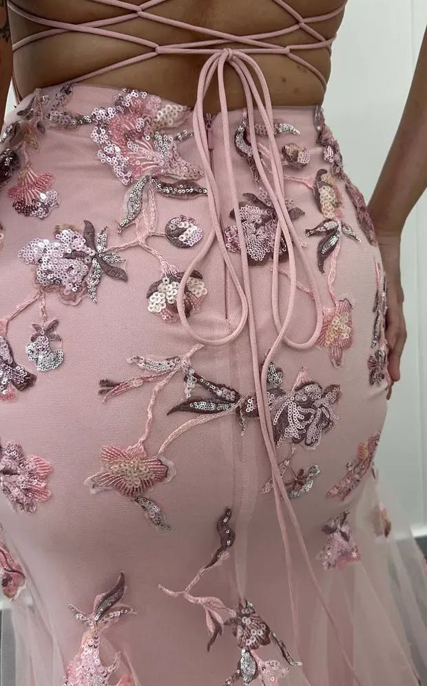 Sparkly Blush Corset Mermaid Long Floral Prom Dress