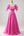 Puff Sleeves Hot Pink Prom Dress with Ruffles