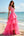 A Line Hot Pink V Neck Tiered Long Prom Dress