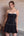 Black Satin A Line Striped Mini Prom Dress