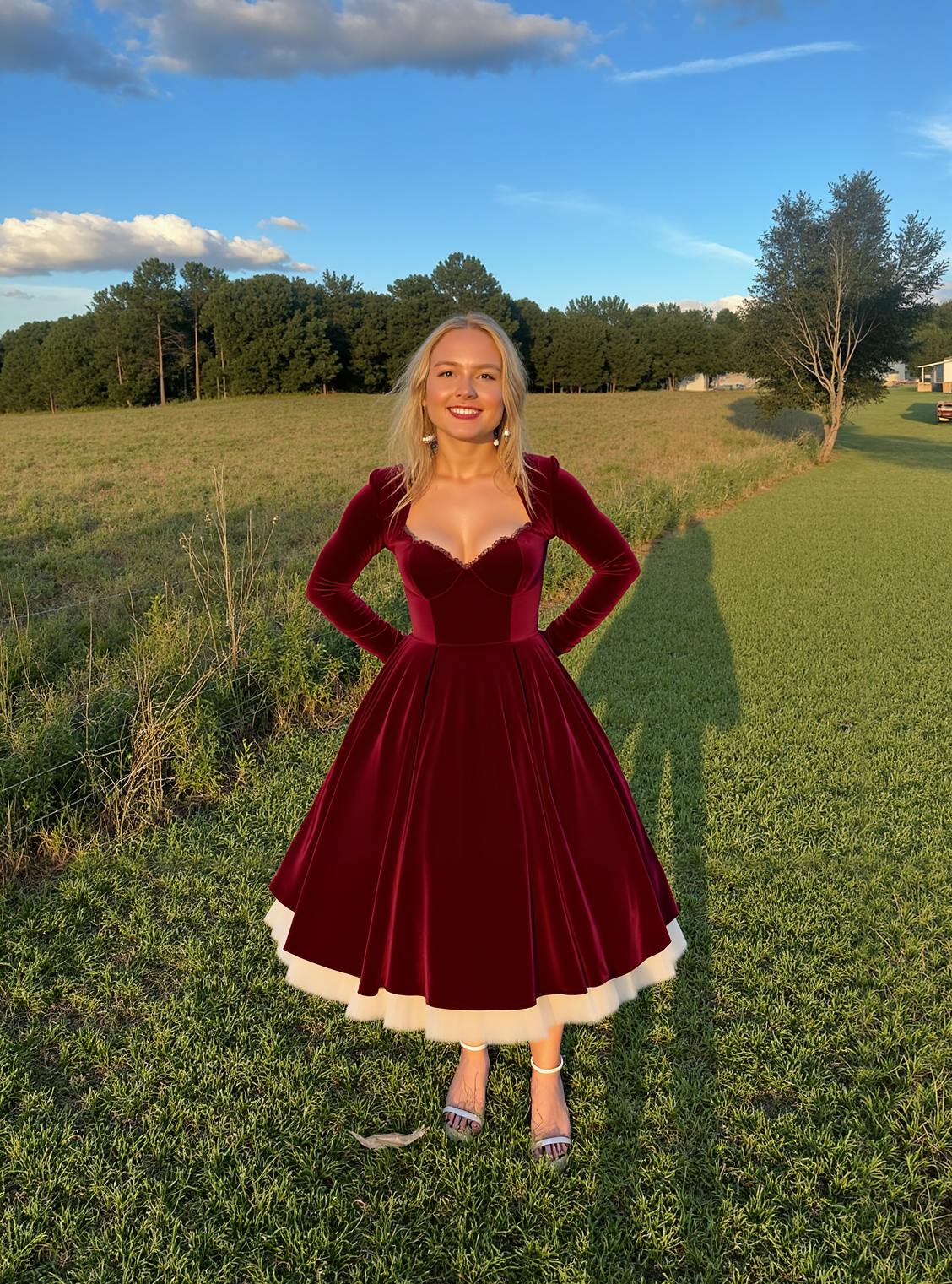 Cabernet Velvet A Line Sweetheart Long Wedding Guest Dress with Sleeves