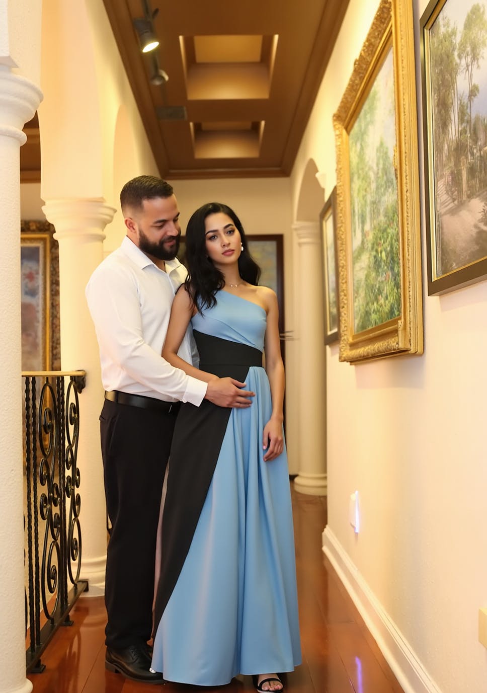The dress has a great length, reaching the floor when worn with medium heels. The fit is flattering and hugs the body nicely, especially around the waist and hips. The one-shoulder design adds a classy, modern touch. Overall, it's a beautiful and flattering dress, perfect for formal events