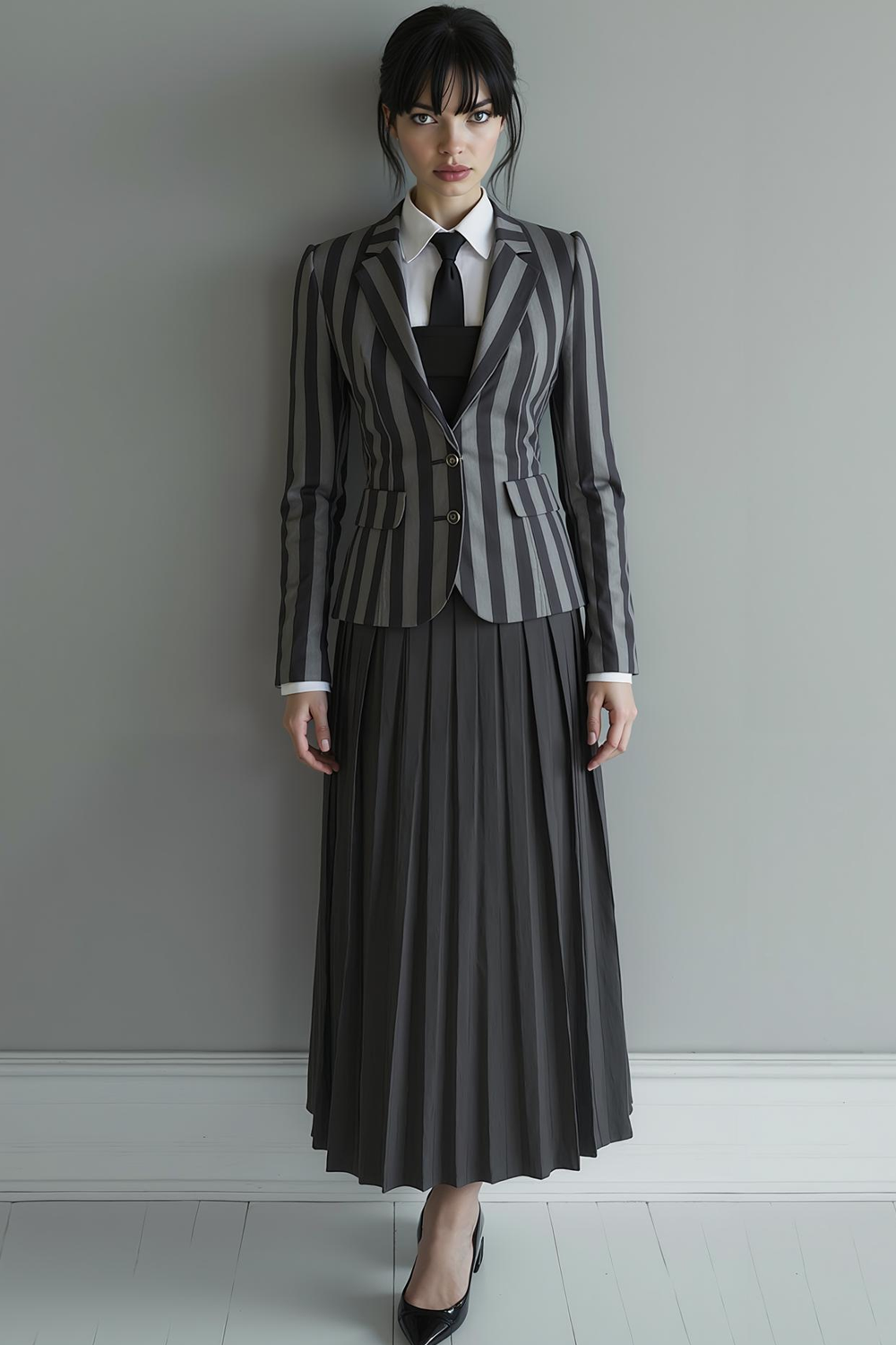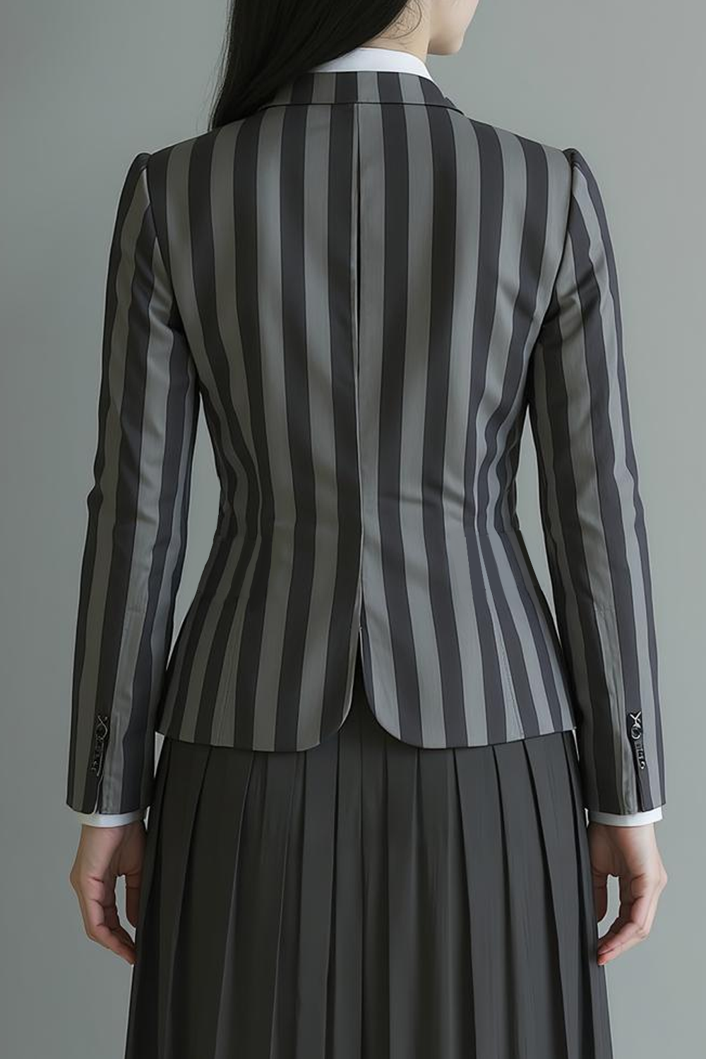 Black Striped Notched Lapel Single Breasted Women Blazer