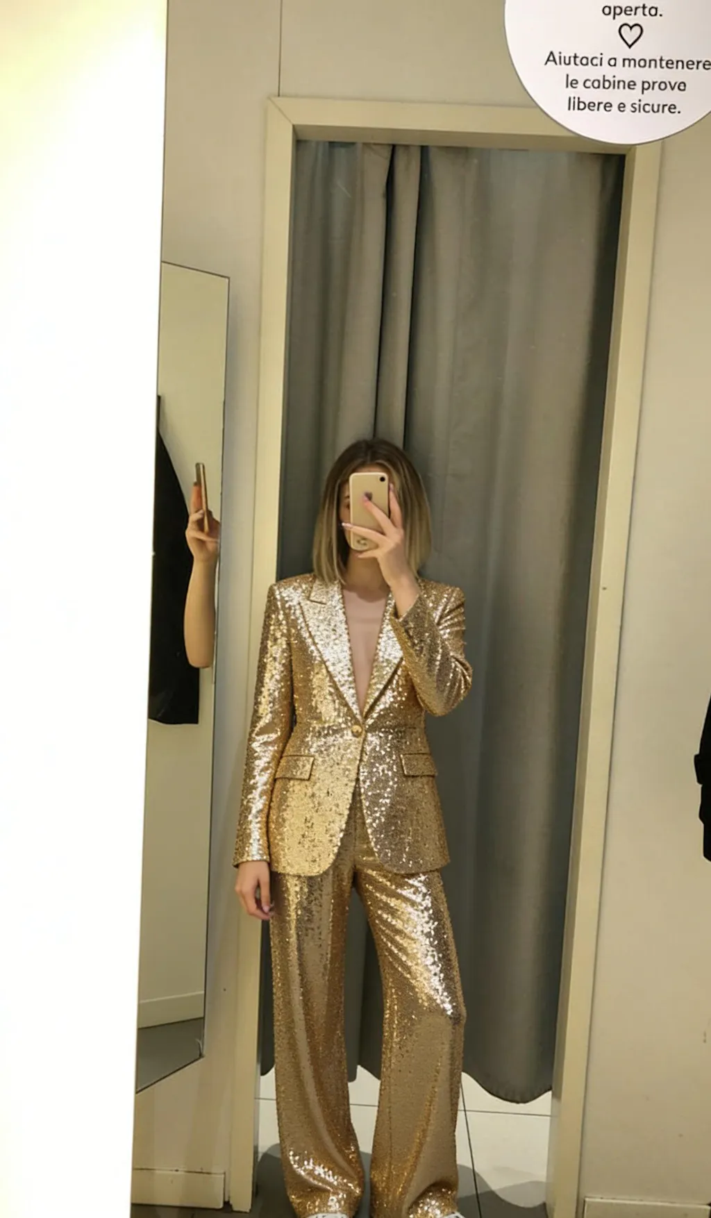 I absolutely love this suit! The sequins are eye-catching, but it's not too flashy. The pockets are so convenient, and the fit is amazing.