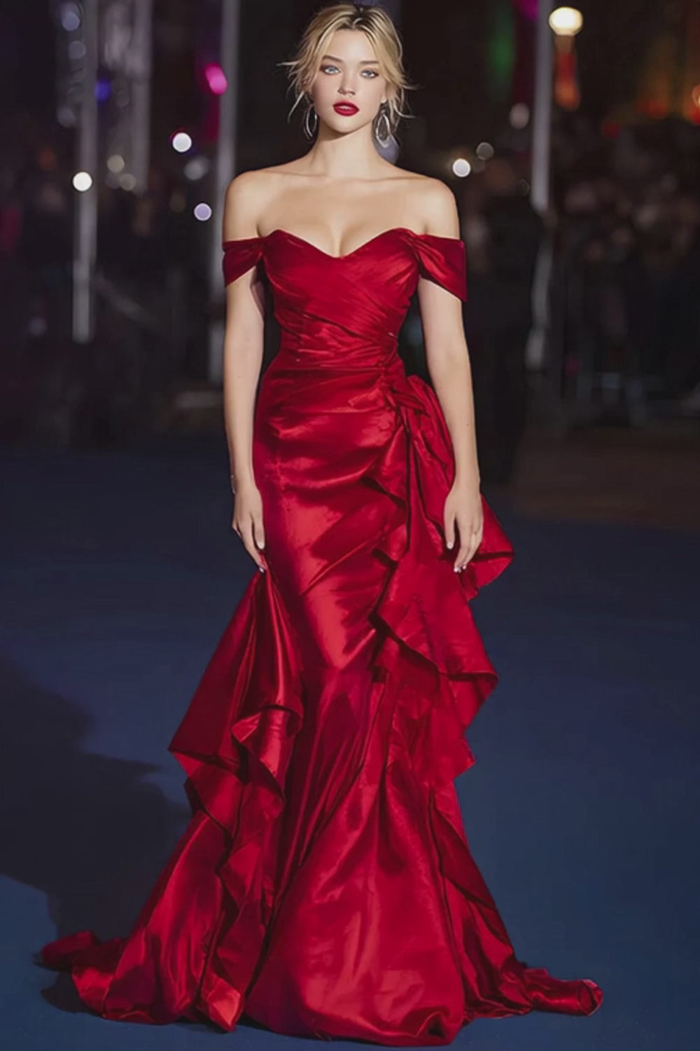 Dark Green Mermaid Off the Shoulder Maxi Gala Dress with Ruffles