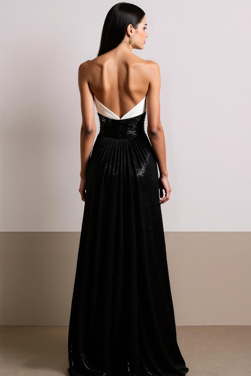 Sparkly Black White Sequin Halter A Line Maxi Evening Dress