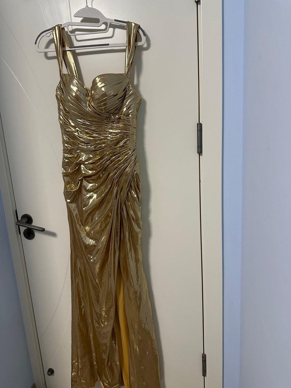 Sparkly Brown Off the Shoulder Drape Sequin Maxi Gala Dress with Slit