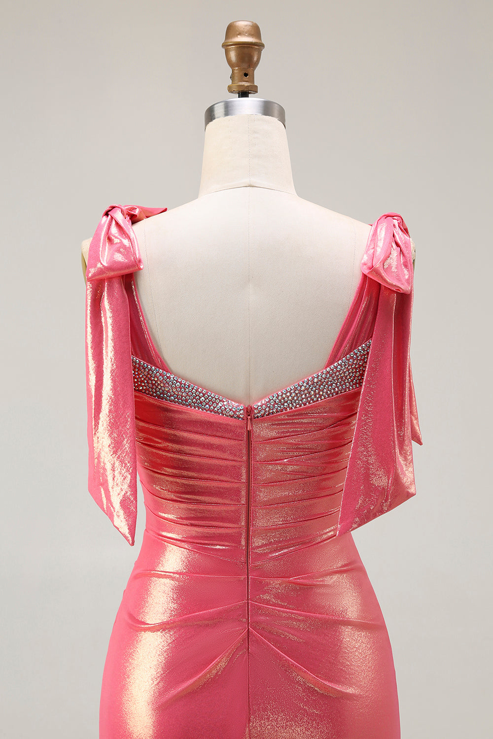 Sparkly Coral Mermaid Metallic Beaded Long Prom Dress with Slit