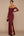 Plum Satin Ruffled V-Neck Long Sleeves Formal Dress with Slit