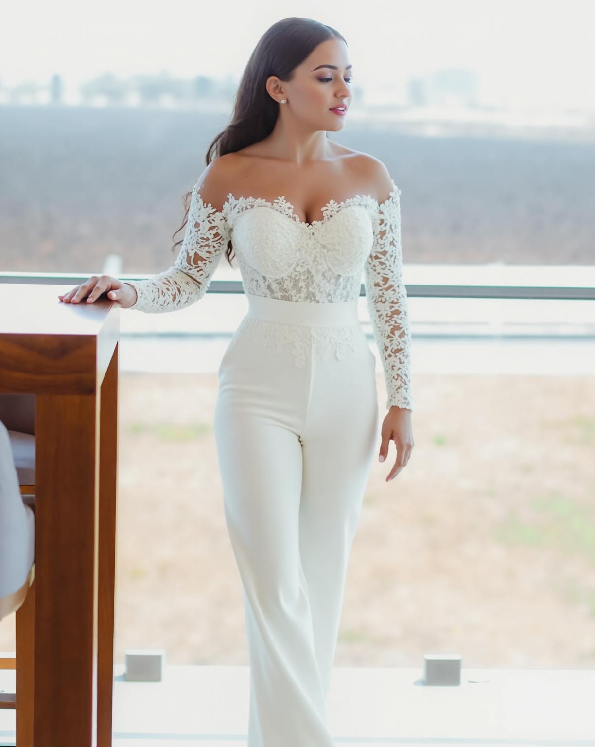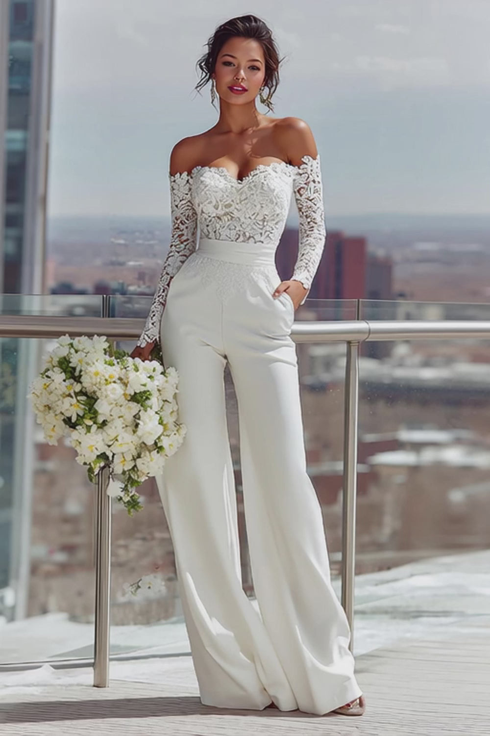 White Sweetheart Satin Bridal Jumpsuits with Lace