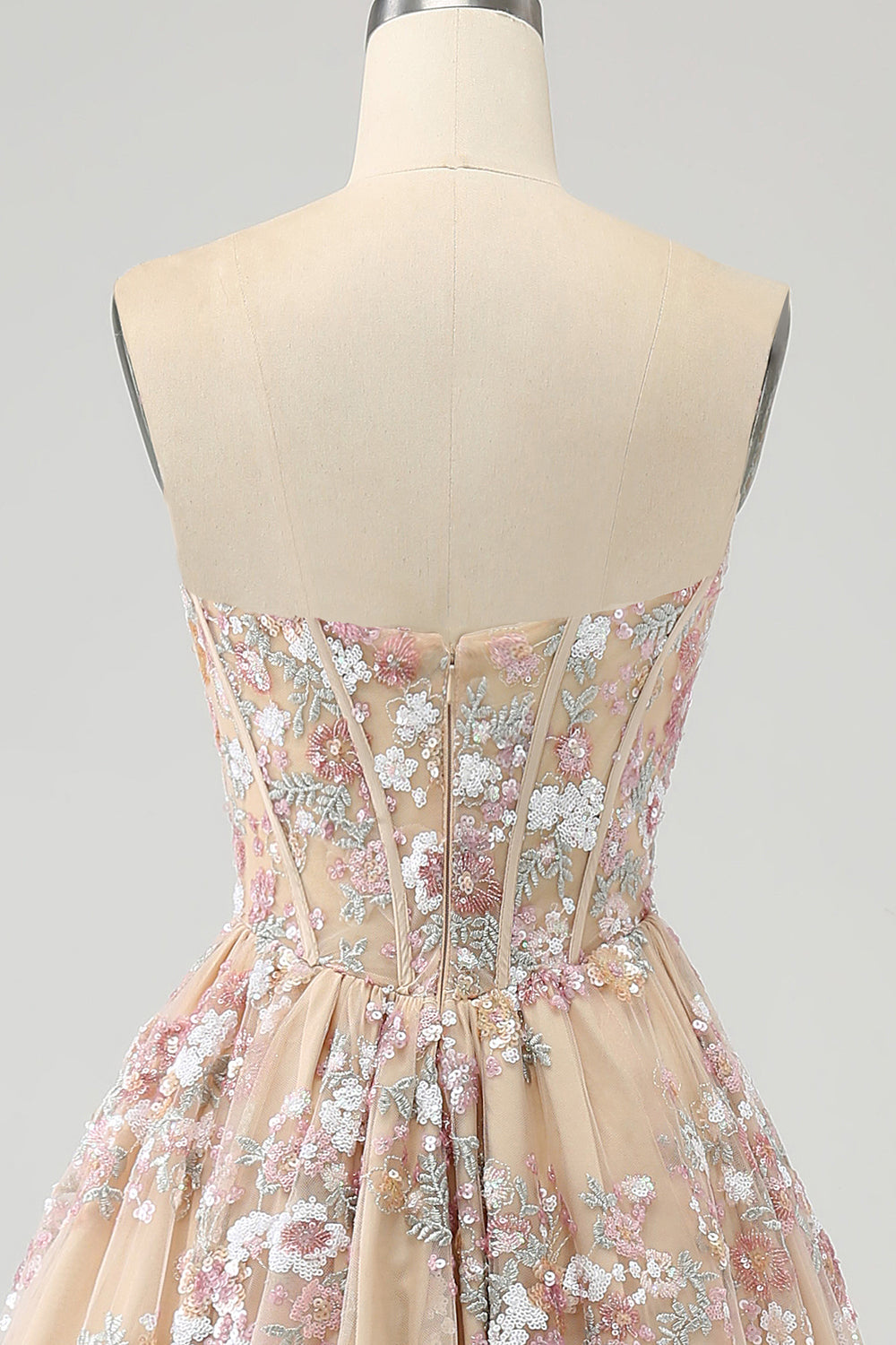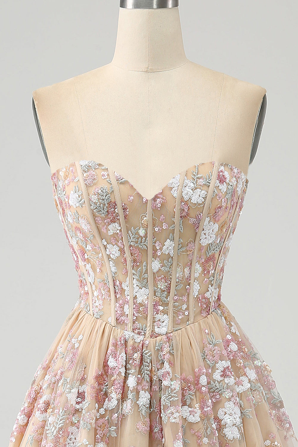 Luxurious A Line Sweetheart Champagne Corset Prom Dress with Appliques