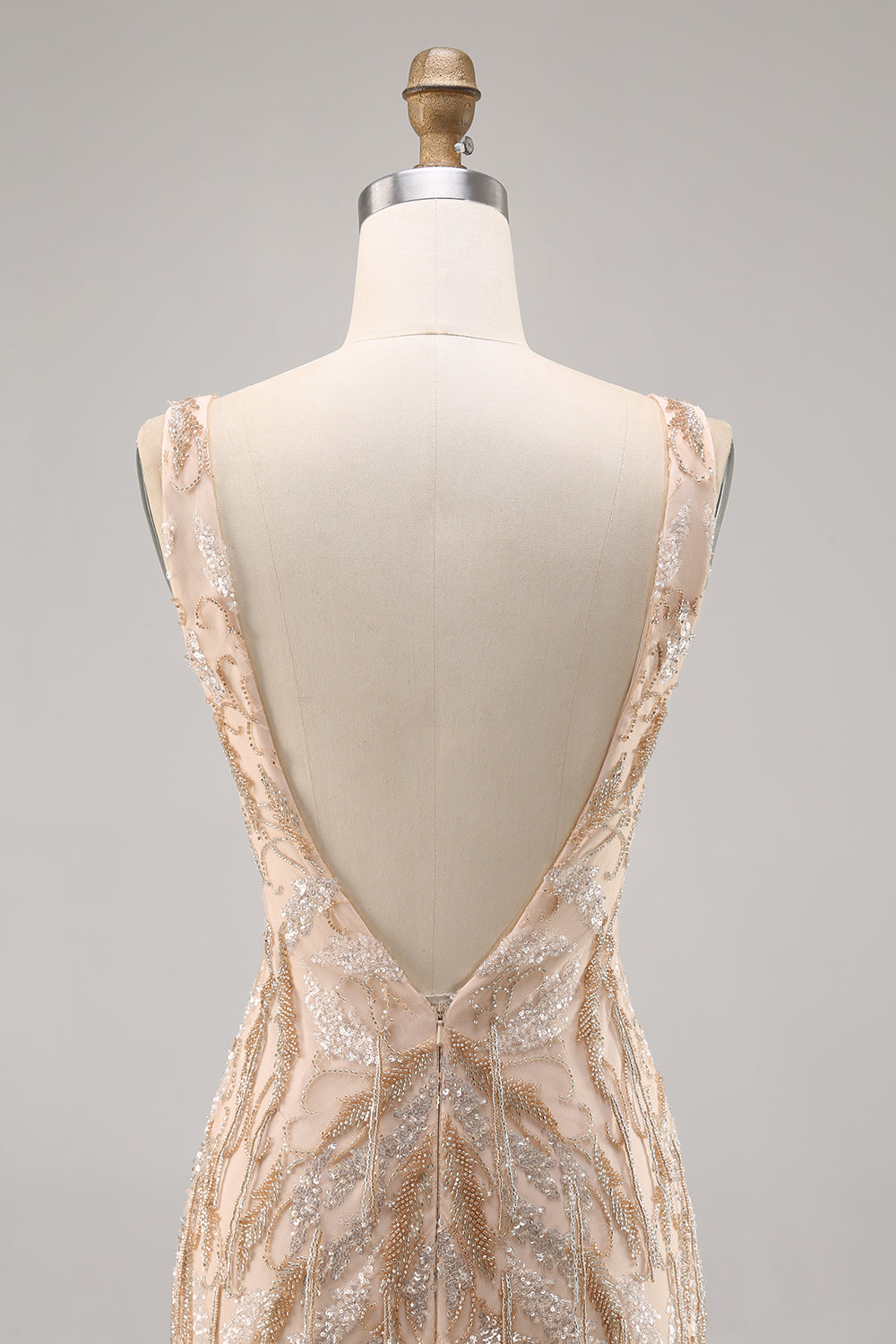 Sparkly Champagne V-Neck Short Sequin Tight Prom Dress with Beading