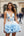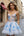 White Blue Flower A Line Criss Cross Back Short Prom Dress