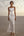 White Satin Bodycon Square Neck Midi Engagement Dress with Sleeves